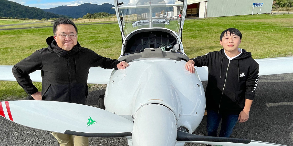2020年5月から訓練を開始し、2021年1月に18歳8ヵ月でファーストソロを達成。2021年10月に、動力滑空機自家用操縦士免許を見事取得しました。